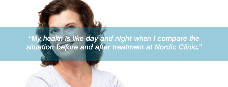 The patient described her health as day and night when comparing before and after treatment at the Nordic Clinic.